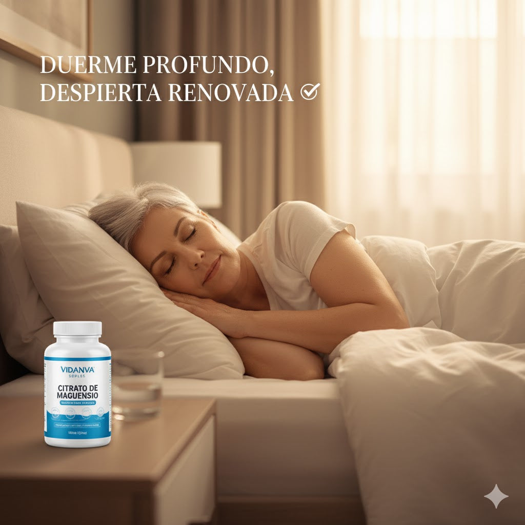 El Magnesio es un mineral esencial que te ayudará a dormir profundamente. Previene los calambres nocturnos y la tensión muscular. No es magia, es ciencia: es la forma de magnesio que tu cuerpo absorbe mejor y más rápido para devolverte la energía y la tranquilidad que mereces. Duerme profundo y despierta renovado/a